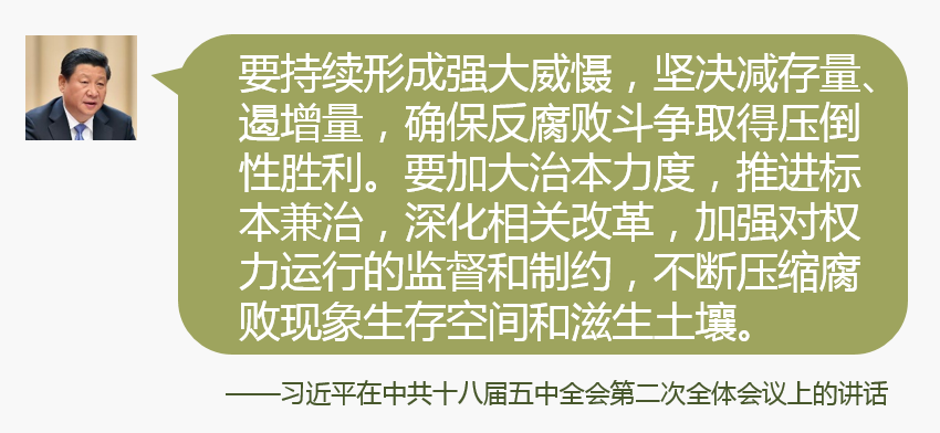 各级党委(党组)要坚持全面从严治党、依规治党,坚持不懈加强领导班子建设,完善党内监督体系,健全党内法规制度,锲而不舍落实中央八项规定精神,把党风廉政建设和反腐败斗争引向深入。要以党章为根本遵循、以党纪为基本准绳,全面加强纪律建设,严明政治纪律和政治规矩,维护党章党规党纪的权威性,使党内政治生活正常化。要坚持不懈纠正“四风”,紧盯“四风”新形式新动向,严肃查处,寸步不让,在坚持中见常态,向制度建设要长效,推动社会风气好转。要强化党内监督,积极探索党长期执政条件下推进制度创新和强化党内监督的有效途径,加强巡视工作,增强自我净化、自我完善、自我革新、自我提高能力。要利剑高悬,以顽强意志和坚定决心,持续形成强大威慑,坚决减存量、遏增量,确保反腐败斗争取得压倒性胜利。要加大治本力度,推进标本兼治,深化相关改革,加强对权力运行的监督和制约,不断压缩腐败现象生存空间和滋生土壤。要把制度建设摆在党的建设的重要位置,以制度建设巩固思想建设、组织建设、作风建设、反腐倡廉建设成果,加强制度执行力建设,为党的长治久安提供坚强制度保障。